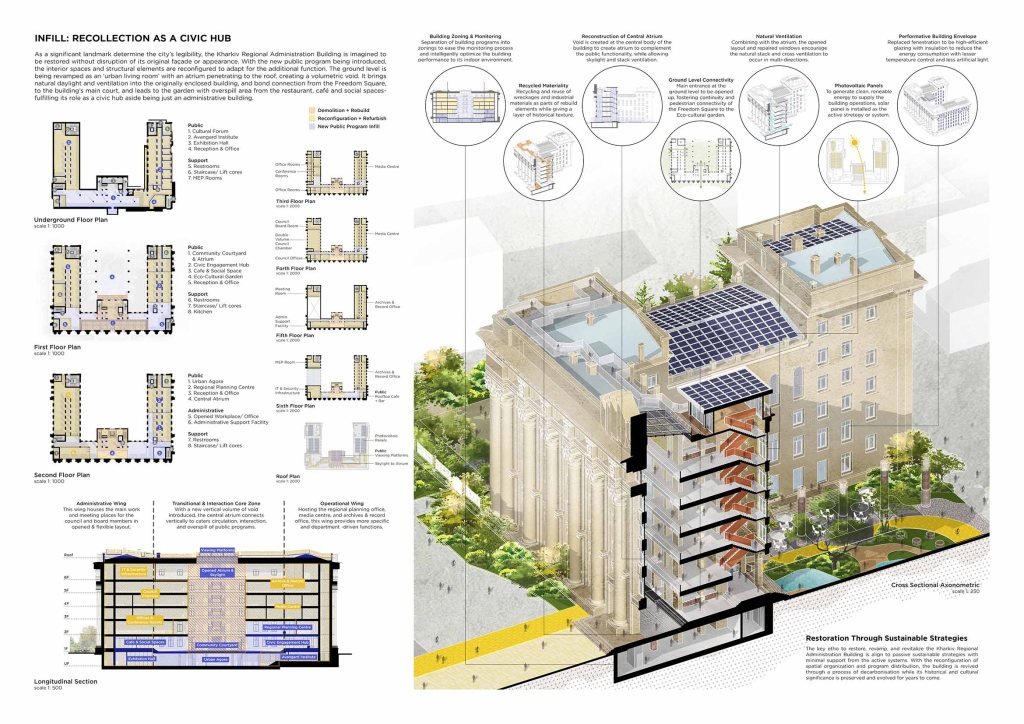 Traversing through the revived Freedom Square and the administration building, we shall see the mirage, traces and imprints of its past, yet the projection of new lives inhabiting the place and its landscape for a hopeful future. The revival of the Kharkiv Freedom Square and Regional Administration Building is thus a portrayal of its circumstances and context to be restored as a historical, cultural, and civic heritage- a common ground of collective memories for Kharkiv’s citizens.