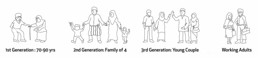 Modern families and lifestyles change as speedy as the rapid changes of surrounding urban flux. Therefore, the house is designed to grow with a typical Malaysian family over time. In this proposal, the hypothetical users are family of 3 generations and tenants who all live under a same roof, where the architecture will be the conjunction of their daily lives.