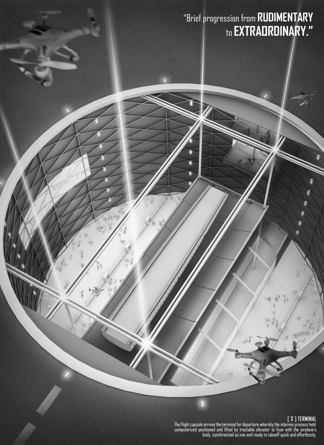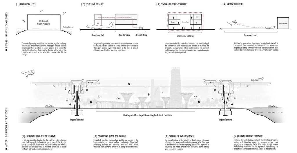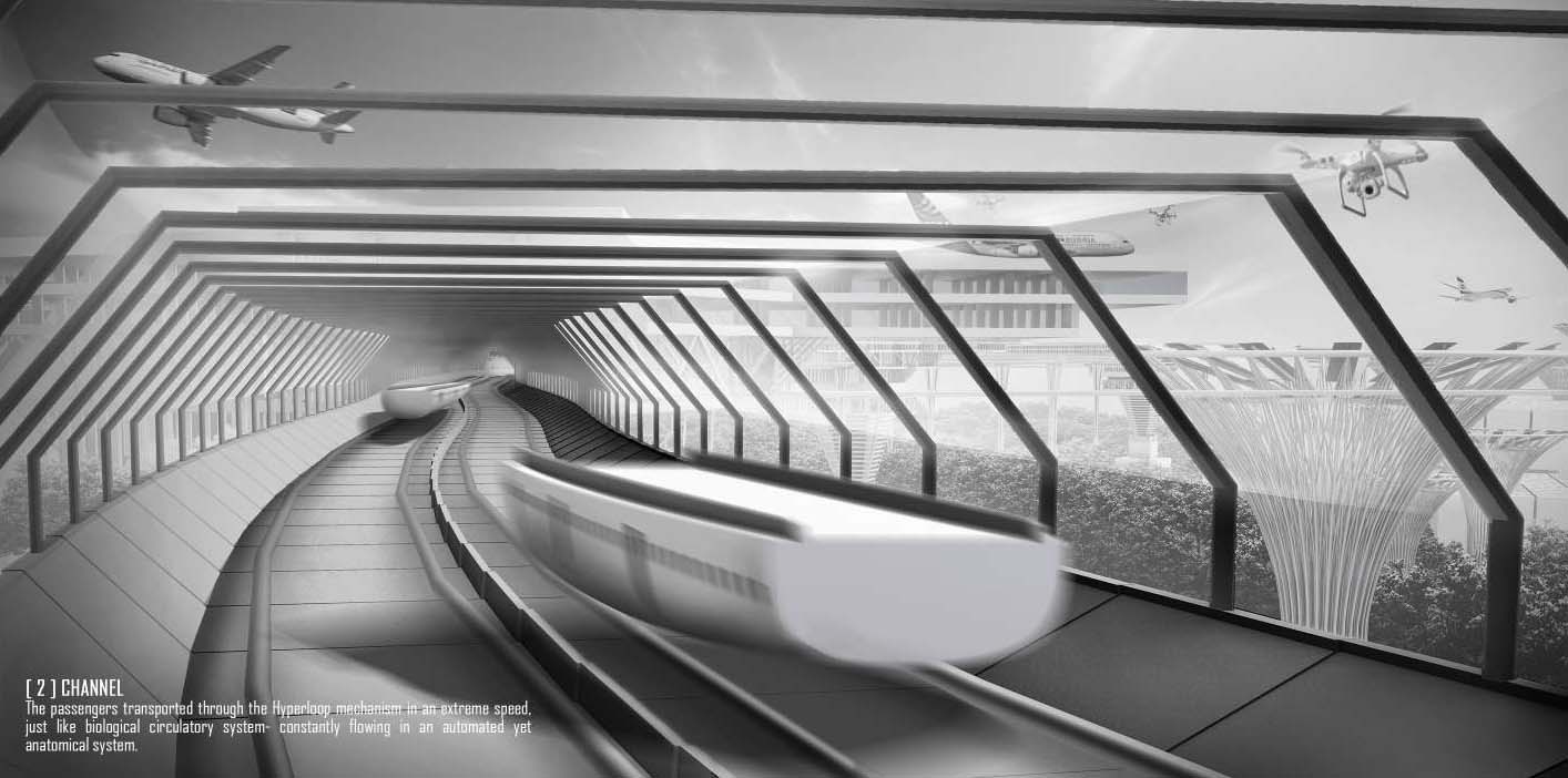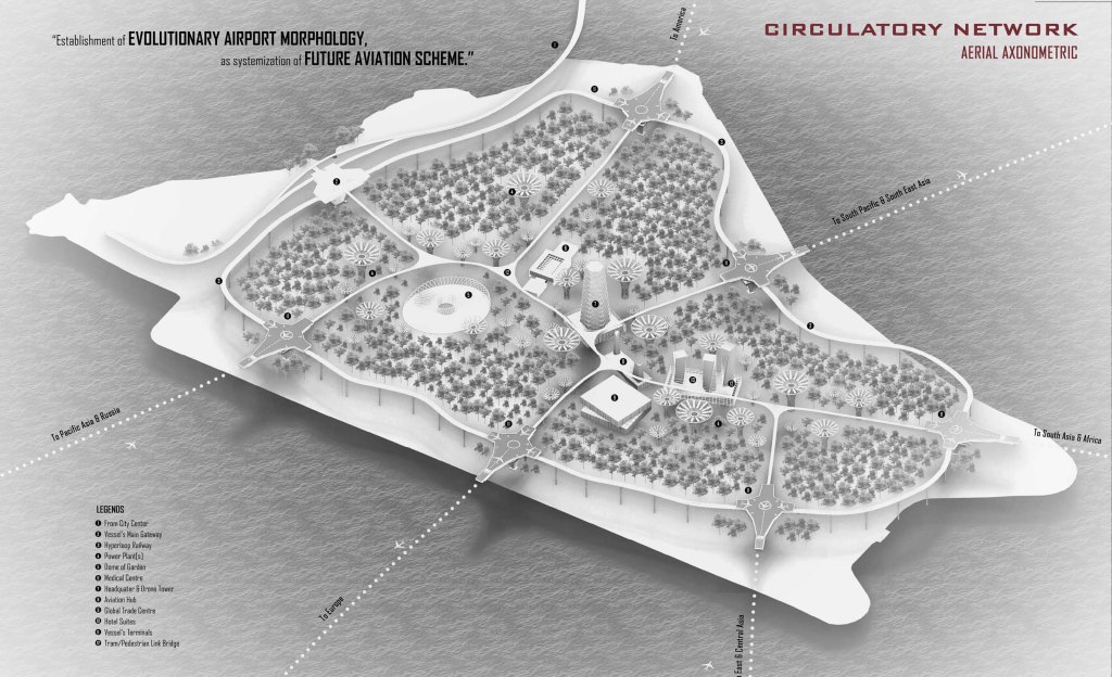 Since 20th century, the demand of air travel has escalated exponentially and become a momentous proliferation as daily transit in the near future. Whereas airport has emerged as an significant architecture typology as transition capital representing a country. However, upon the ascending rise in passenger number, mankind is anticipating the huge lapse in current typologies of airport in term of turnaround speed, building footprint, travelling distance, sustainability, collective experience etc. So, we questioned- what could be the evolutionary of airport as human’s mobility evolves?